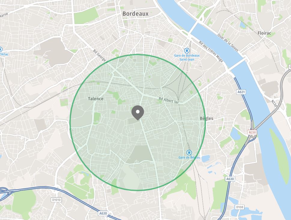 – Dans un rayon de 2 km autour de la clinique Bagatelle, ce qui inclus le Nord-Ouest de Bègles (jusqu’à la ligne de tram C environ) et le quartier Nansouty à Bordeaux.